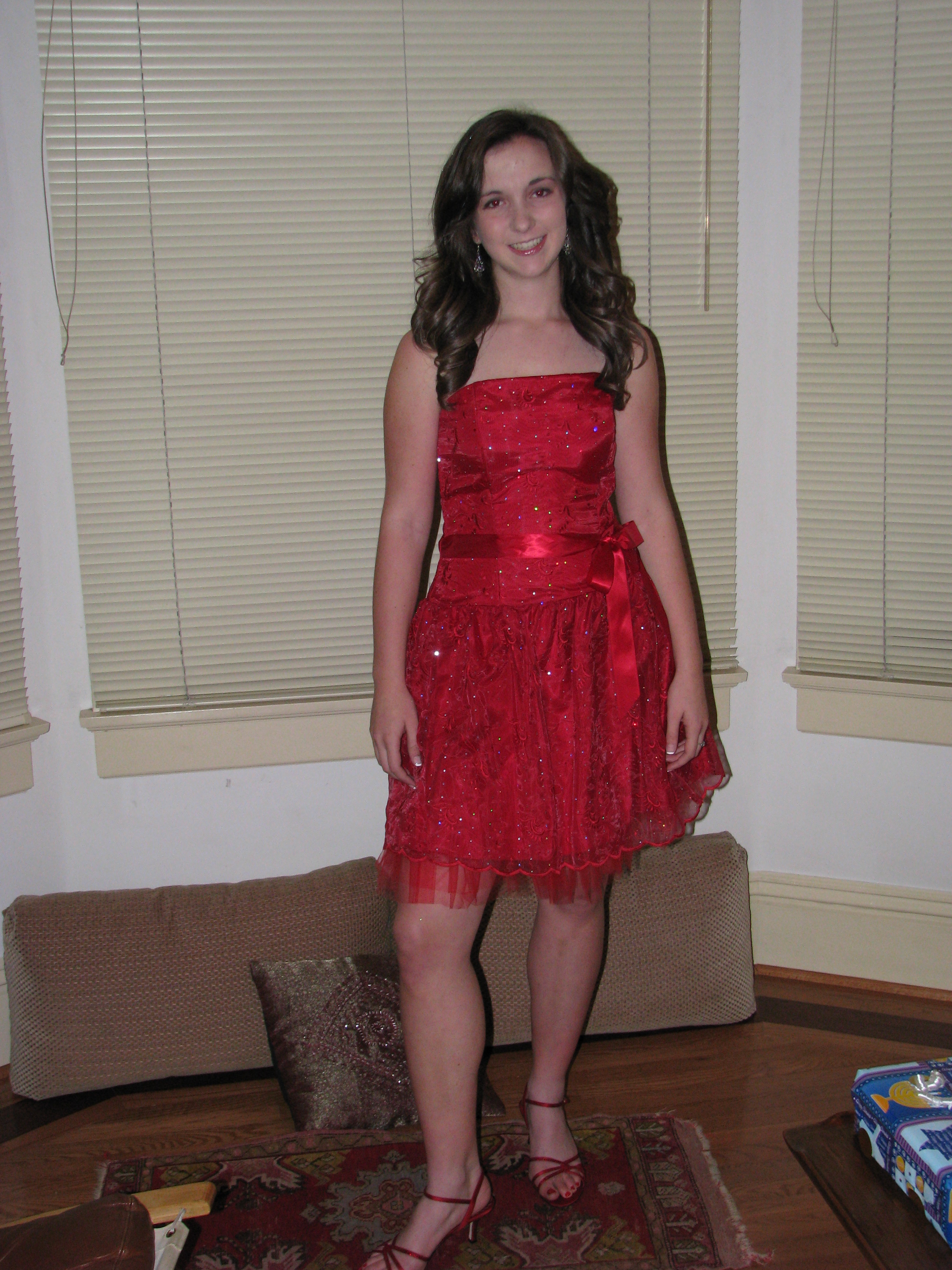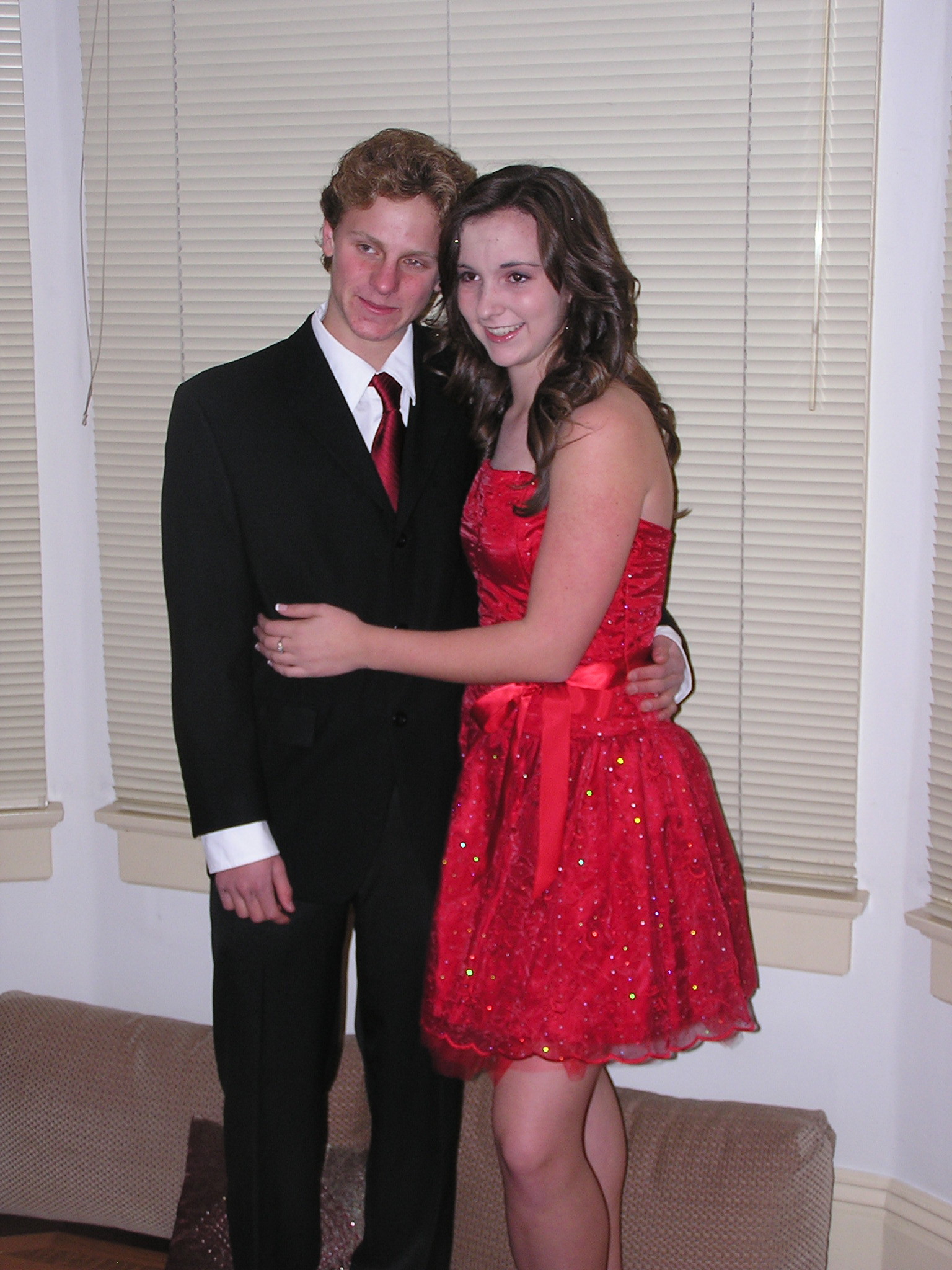 Sally and Zach Deutsch-Gross, dressed for Lowell Winter Ball (taken with both trusty Olympus and new Canon), then Sally after.