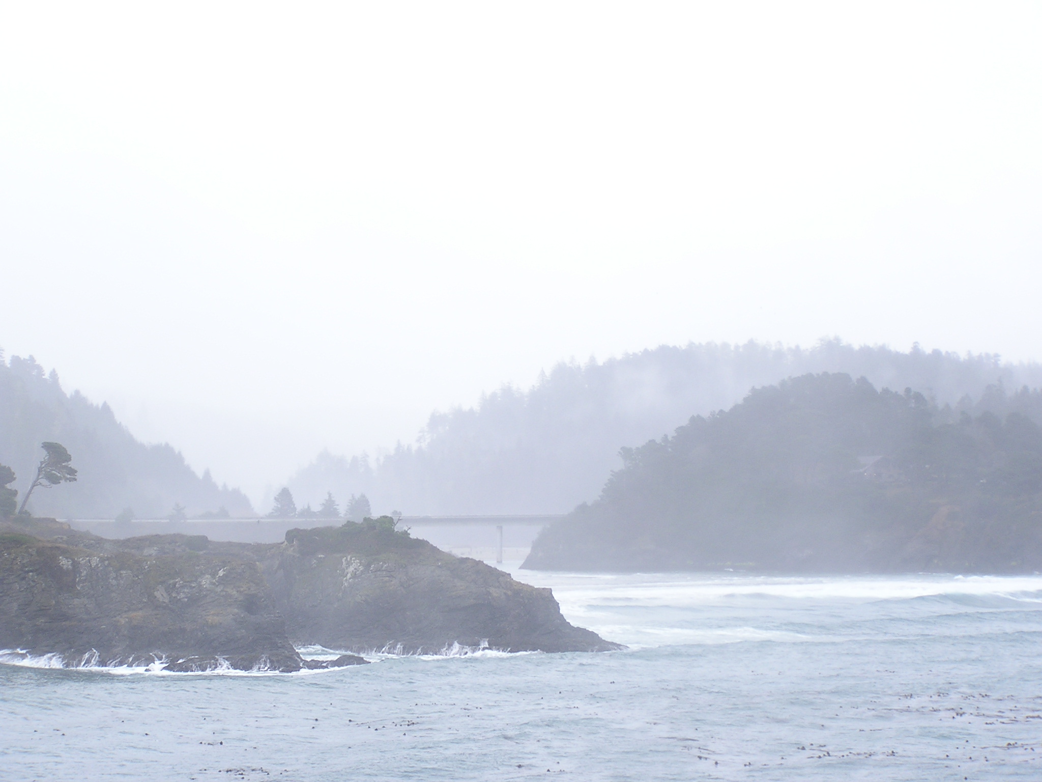 Mendocino on rainy day, including panoramas.