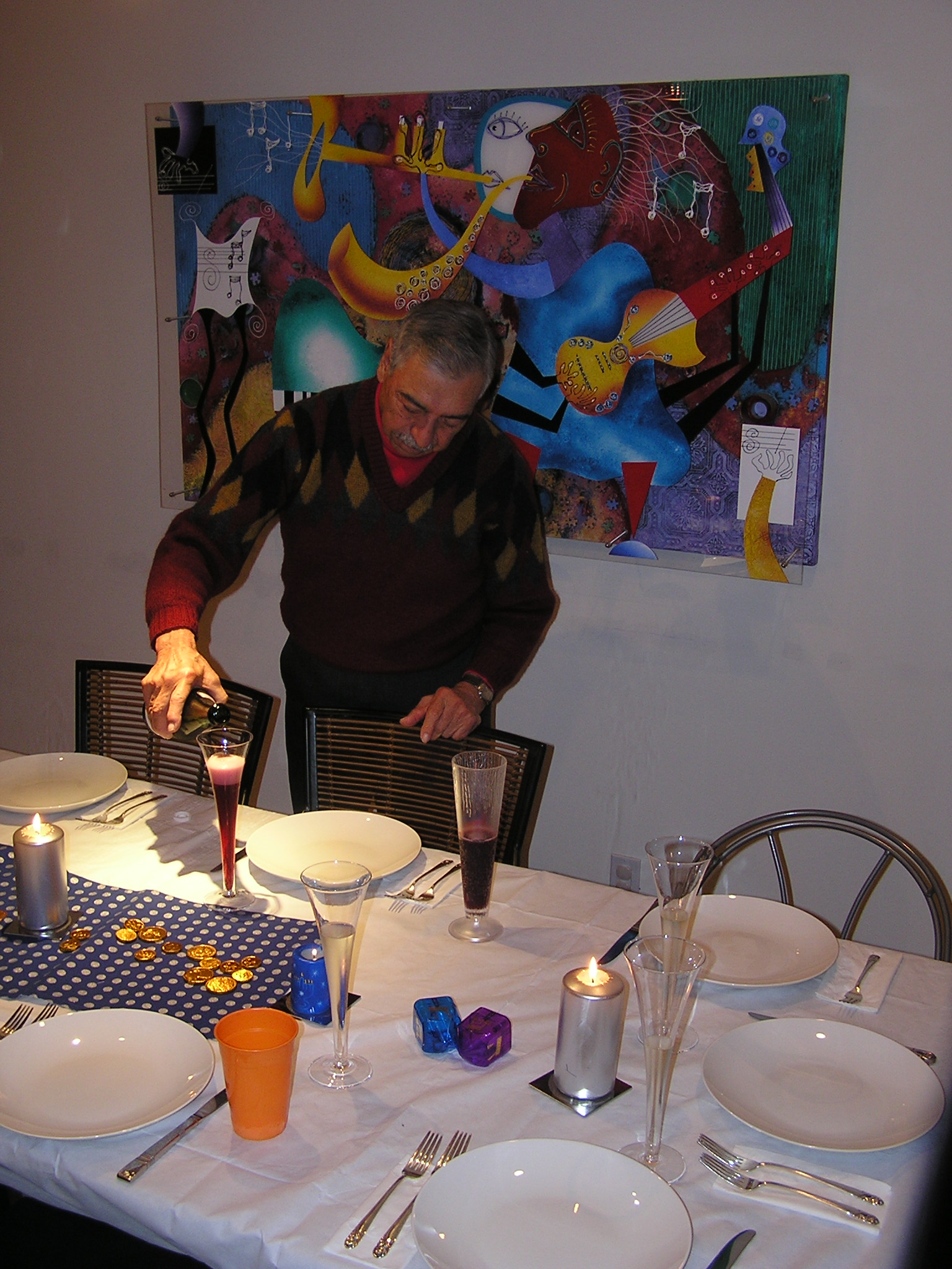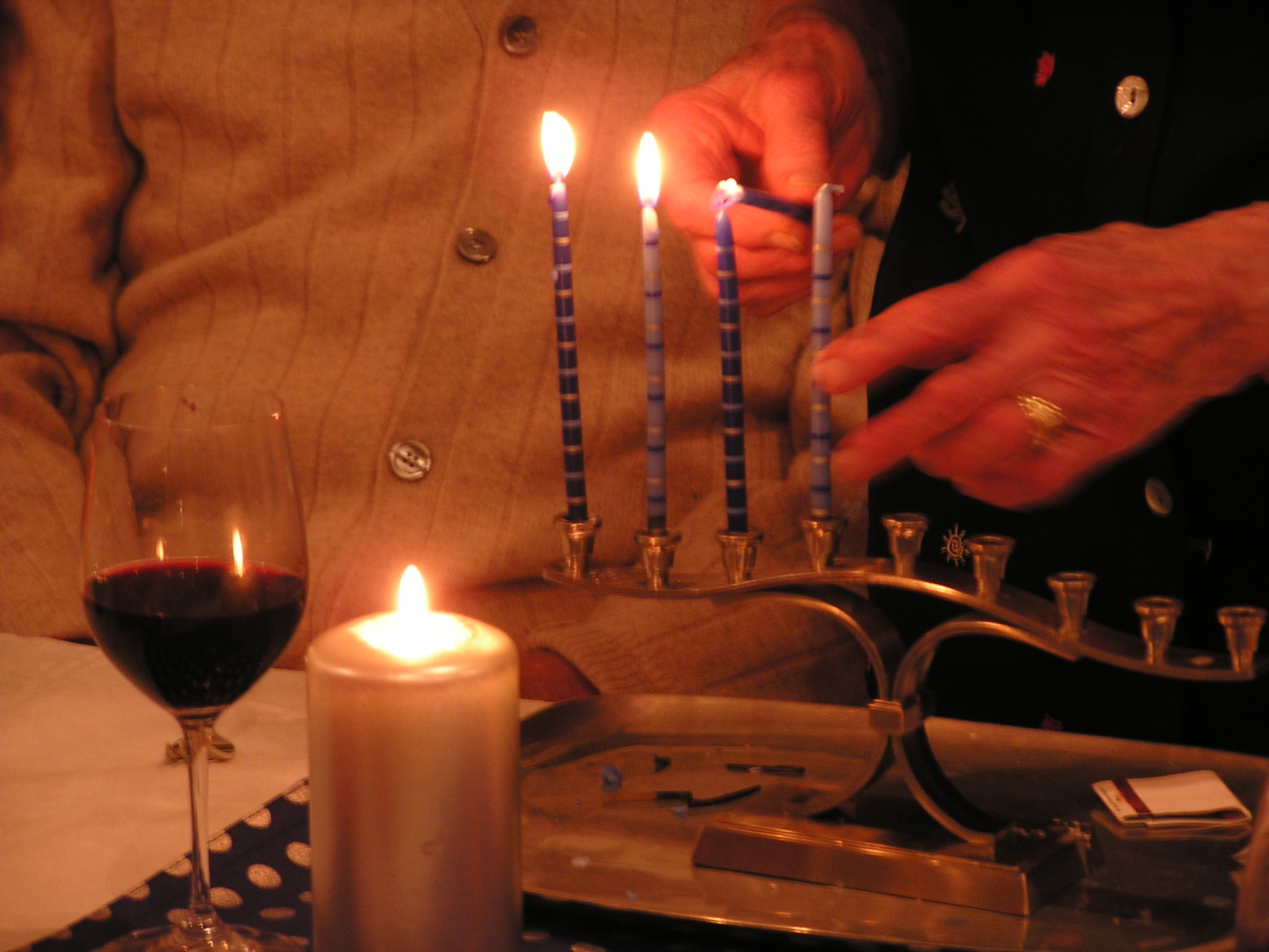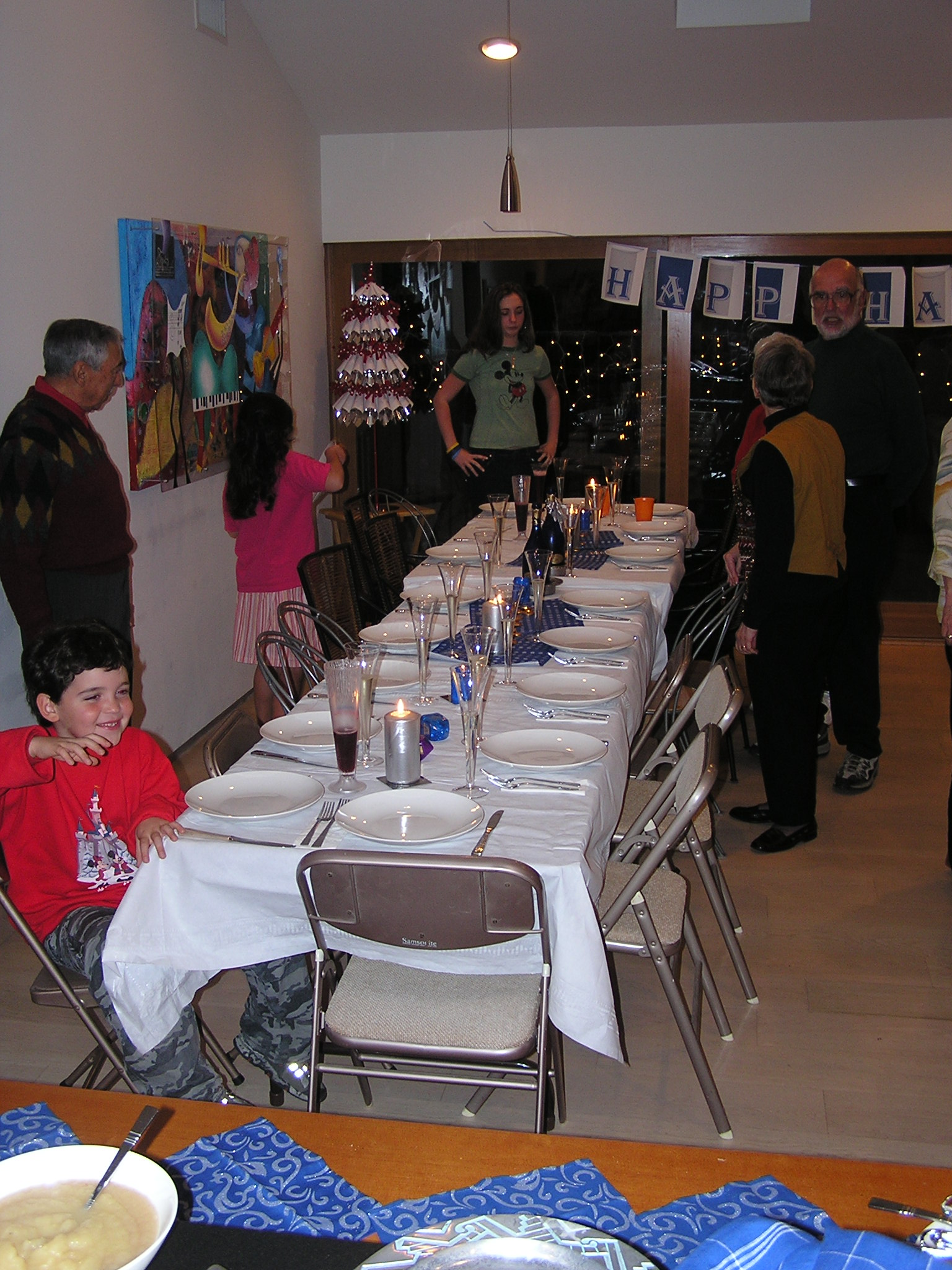 Hannukah celebration at Debra and Jay's: Debra/Jay/Alyssa/Jake, HWS/MKS, BSN/SAN/ASN/DWN/SEN, Al Archuleta, David and Harriet Stolmack, Aunt Francis.