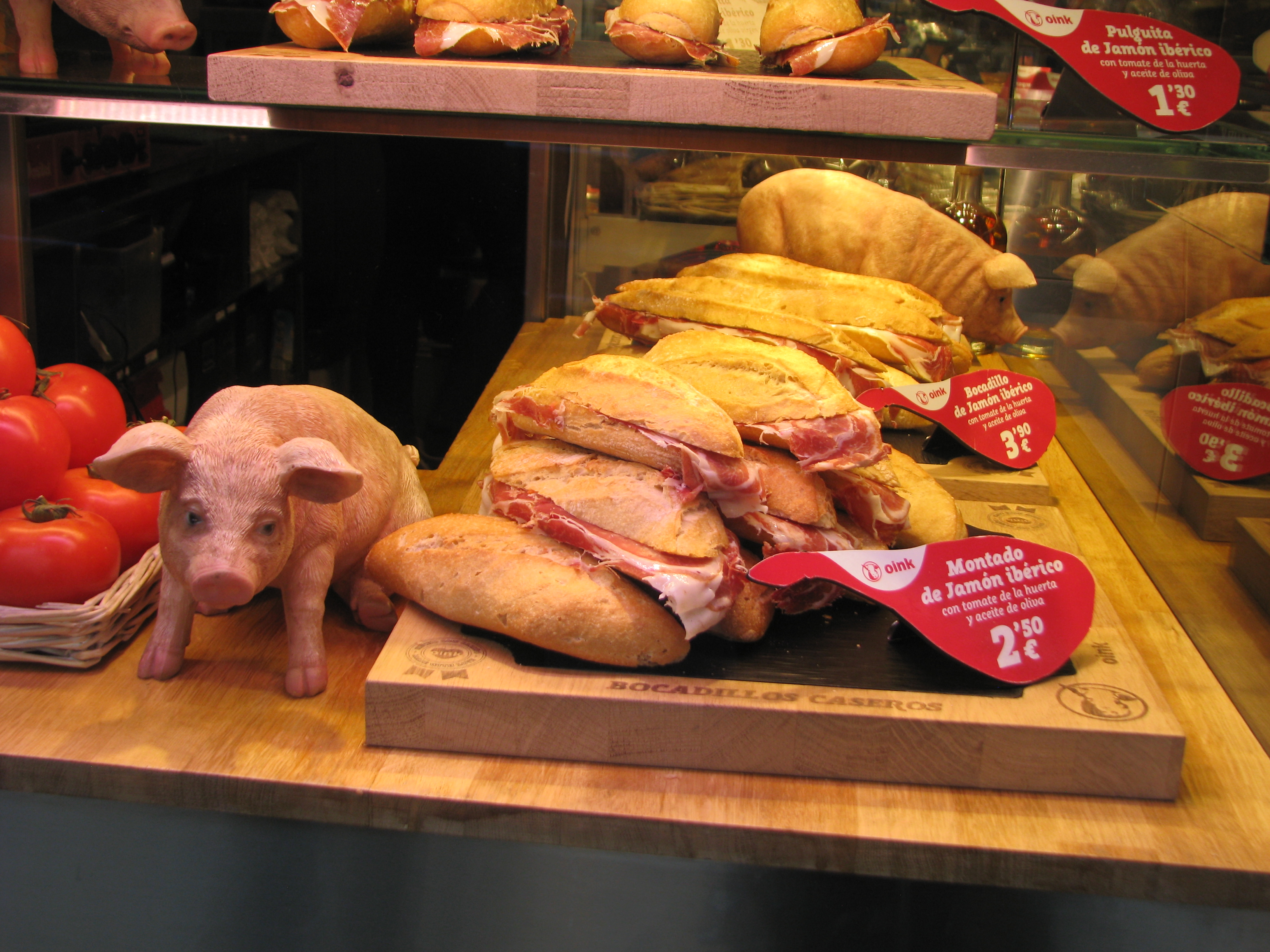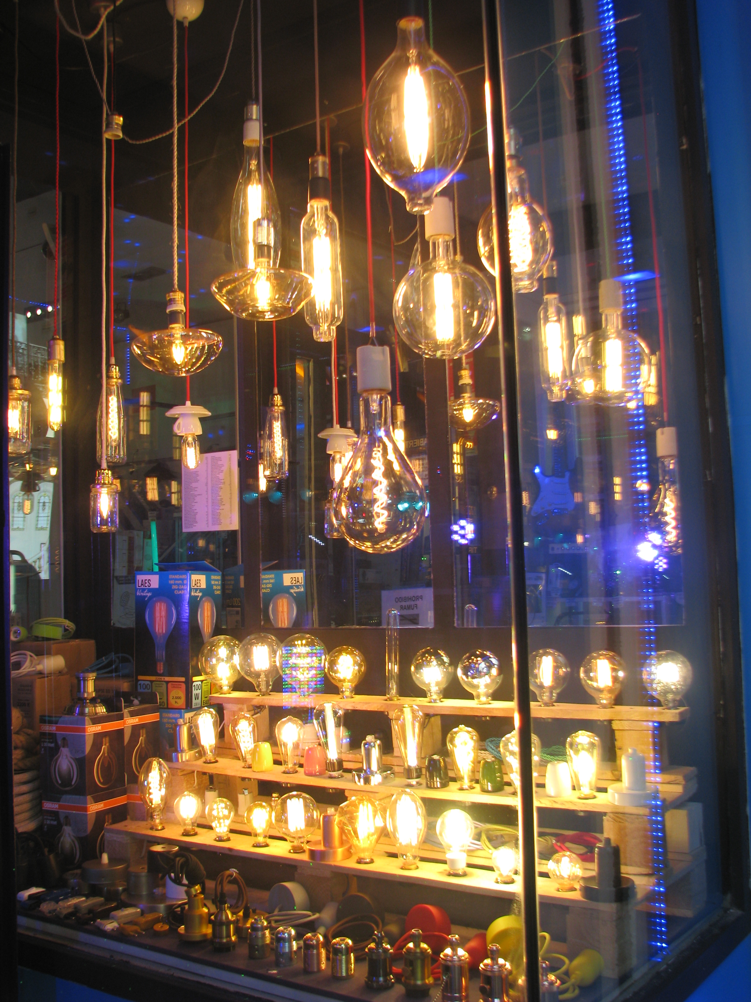 Retail: hairbrushes, jamón, lightbulbs.