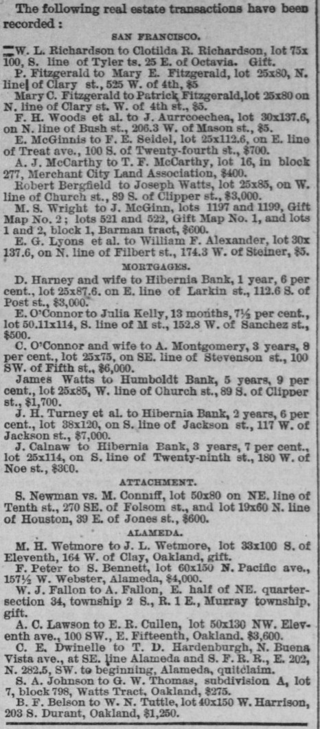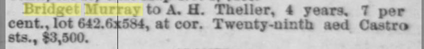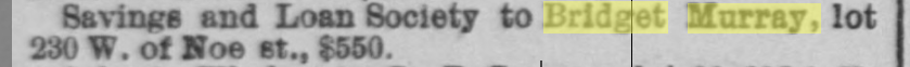 | 03/18/1887 | Bridget Murray block |