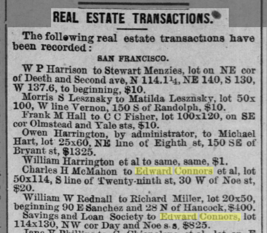 | 04/28/1889 | Connors/Mitchell real estate [page] |