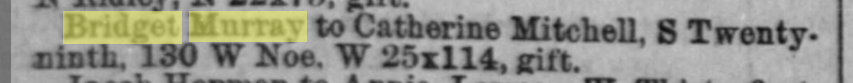 | 07/31/1890 | Bridget Murray lot gifts to Mary and Annie |