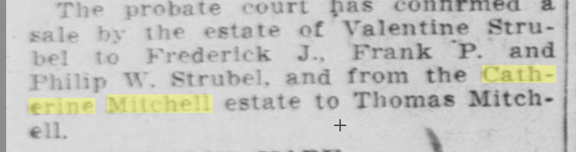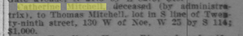 | 10/02/1909 | Catherine Mitchell estate to Thomas Mitchell |