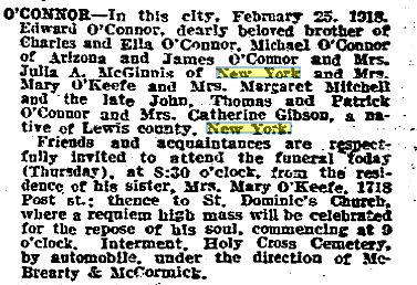 | 02/28/1918 | Edward O'Connor death notice |